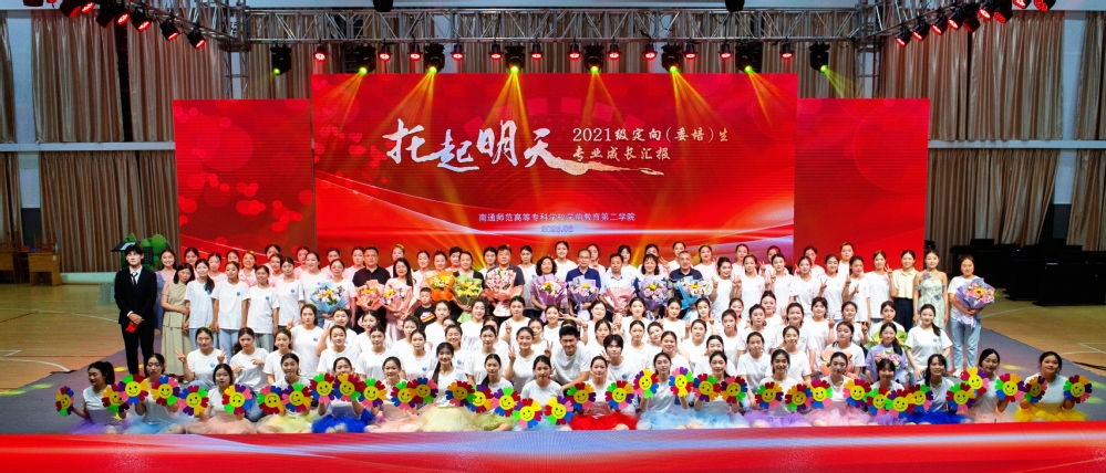 6月18日,学前教育第二学院2021级定向(委培)生专业成长汇报活动在体育馆隆重举行,多盈体育(中国)领导、校企合作单位负责人、2021级定向(委培)生家长出席活动。
