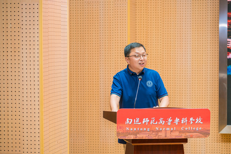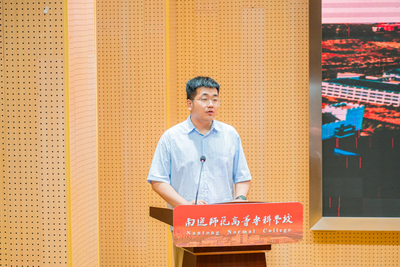 初等教育学院党总支书记汪薛松作为师父代表发言。他回顾了自身学生工作经历,郑重承诺将始终坚守育人初心,做好师德表率;倾尽经验所长,助力专业成长;永葆学习心态,共促双向成长。